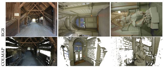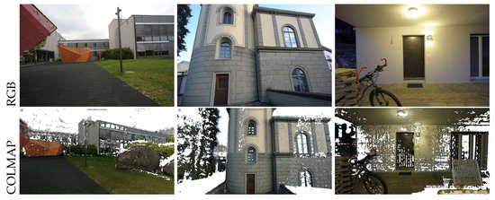 - Schönberger, J.L.; Zheng, E.; Frahm, J.M.; Pollefeys, M. Pixelwise view selection for unstructured multi-view stereo. In Proceedings of the Computer Vision–ECCV 2016: 14th European Conference, Amsterdam, The Netherlands, 11–14 October 2016; Proceedings, Part III 14. Springer: Berlin/Heidelberg, Germany, 2016; pp. 501–518. [Google Scholar]