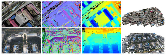 The reconstruction results of our method are shown in Figure 6, including normal maps, depth maps, and point clouds. Different colors in the normal map mean different orientations. Different colors in the depth map indicate different distances, where blue is closer and red is farther. Different colors of the point cloud are obtained by projecting each point onto the image plane and sampling the RGB information. These visualization results show that our method can reconstruct high-quality point clouds with a simple random search and parallel propagation.