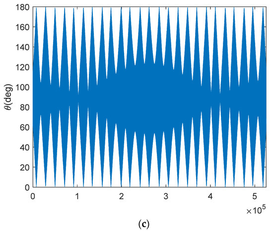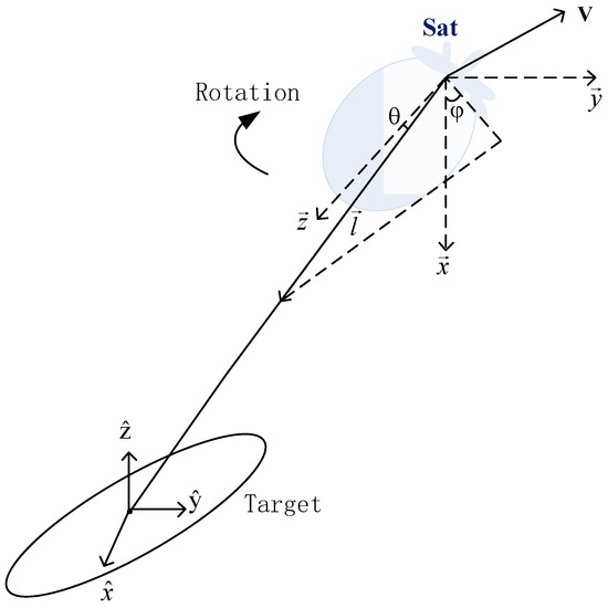 where AT = (R1(roll)·R2(pitch) ·R3(yaw))−1 is made of the attitude angle of the satellite, which is the rotational angle value, as shown in Figure 2. The attitude angle of the spacecraft can be measured by the Flight Control System. R(·) is the Euler rotation matrix about the corresponding axis, and yaw, roll, and pitch stand for the rigid body S/C roll, pitch, and yaw angle, respectively. Me is the installation matrix of the antenna position on board.