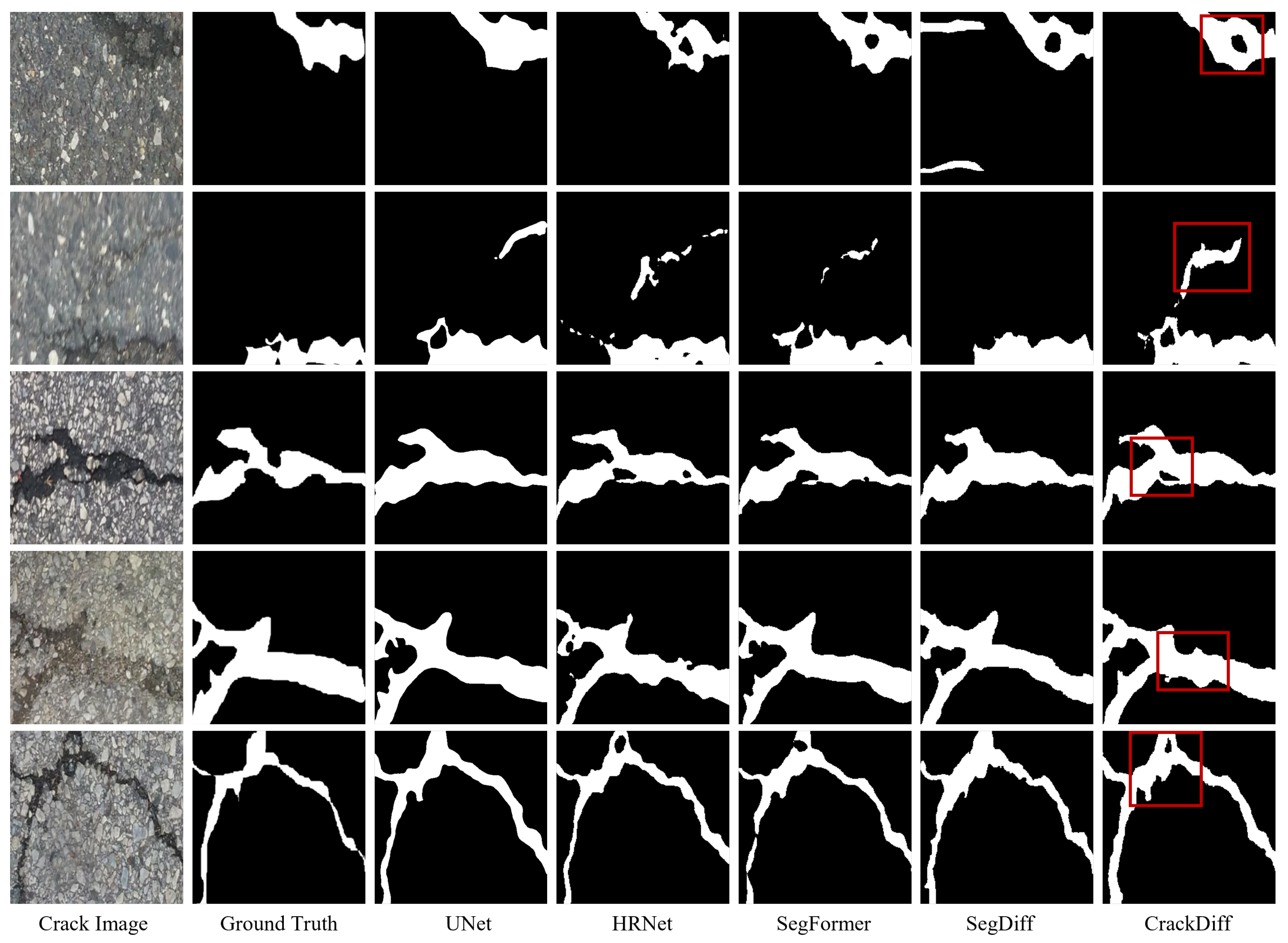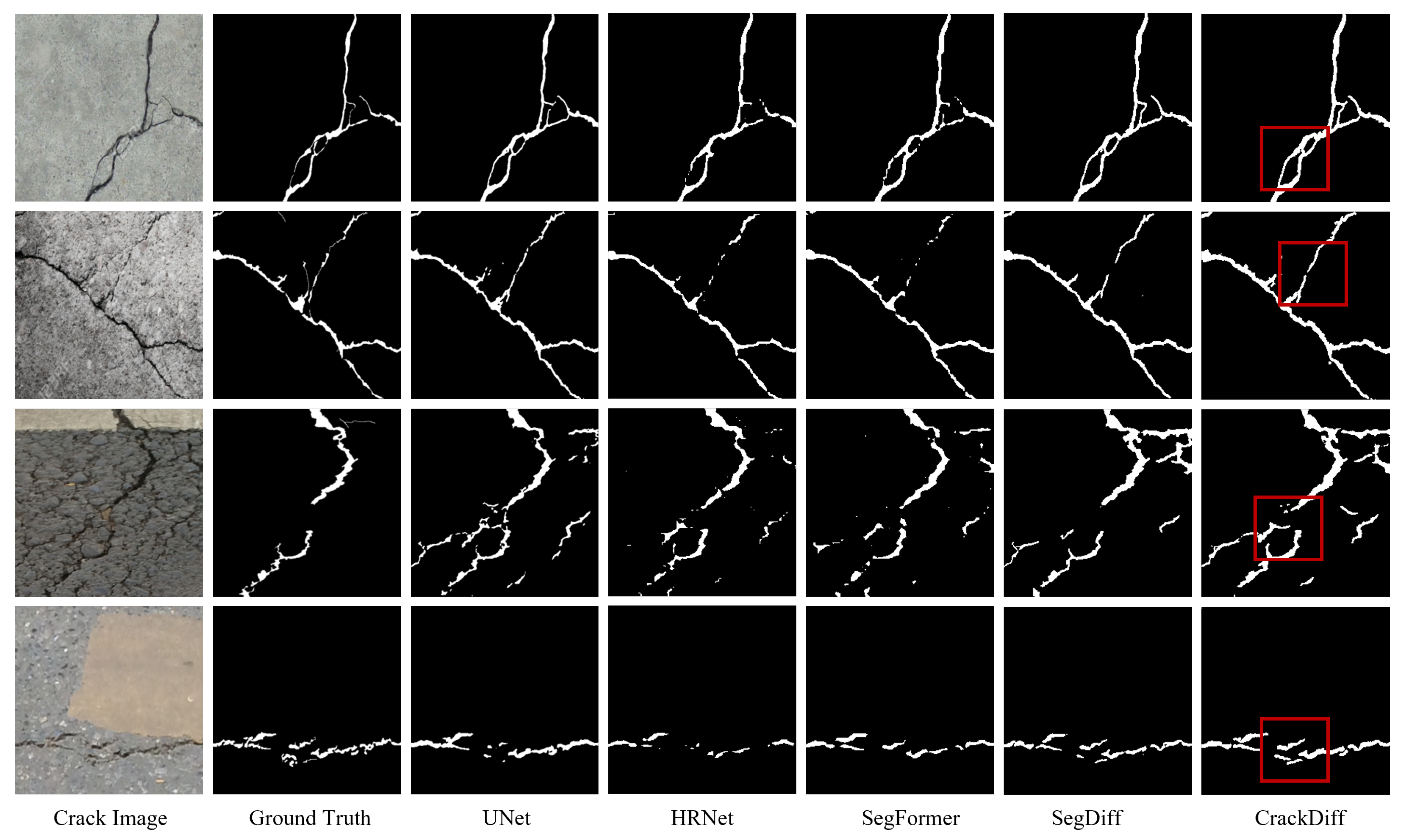 - Through experiments conducted on the Crack500 and DeepCrack datasets, CrackDiff achieves state-of-the-art results in pavement crack detection.