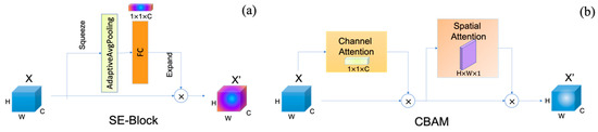 The attention blocks. (a) The structure of SE block; (b) the structure of CBAM block.