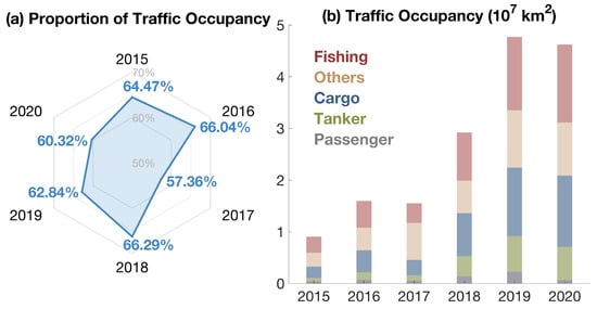 Liu, Y.; Luo, H.; Min, C.; Chen, Q.; Yang, Q. Changes in the Arctic Traffic Occupancy and Their Connection to Sea Ice Conditions from 2015 to 2020. Remote Sens. 2024, 16, 1157. https://doi.org/10.3390/rs16071157