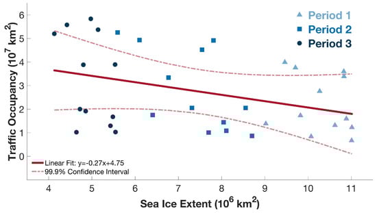 Changes in the Arctic Traffic Occupancy and Their Connection to Sea Ice Conditions from 2015 to 2020