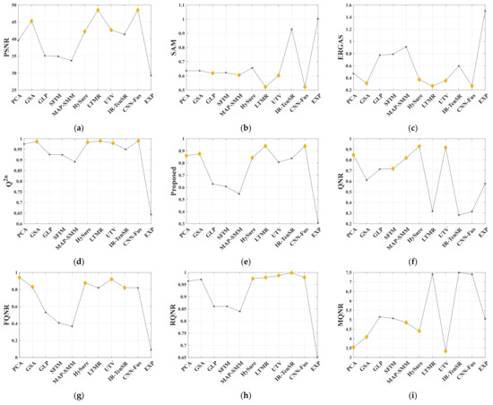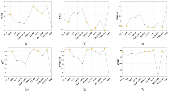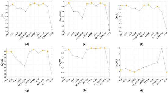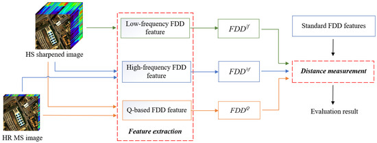 Since the Q index was proposed by Wang et al. in 2002 [74], it has demonstrated a powerful ability to measure the similarity between two images. Several variations of the Q-based QNRs, such as FQNR, RQNR, and HQNR, are the most commonly used in NR-quality assessment of multispectral sharpening. Motivated by this, it is meaningful to find a Q-based FDD feature satisfying the assumption of the preservation of the statistical Q through the hyperspectral sharpening process.