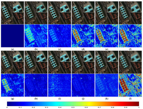 Also, the experiment on the Pavia University dataset is taken as an example to show the experimental validation. Considering the different spatial resolutions of LR-HS images and HR-MS images in practice, the original HS image is degraded at five different resolution scales and the degradation ratios are 2, 4, 6, 8, and 10. At each resolution scale, the corresponding Q-based FDD features are extracted, i.e., , , , , and . The experiment results are shown in Figure 8 and Table 5. It can be seen that the Q-based FDD features at different scales have stable values around 10−3 and basically match with the standard FDD feature. Therefore, for HR-MS and LR-HS images with different spatial resolution ratios in practice, the FDDQ can be used as a feature to represent the quality of HS images.