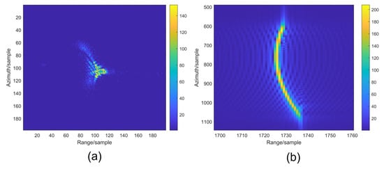 - Jao, J.K. Theory of synthetic aperture radar imaging of a moving target. IEEE Trans. Geosci. Remote Sens. 2001, 39, 1984–1992. [Google Scholar] [CrossRef]