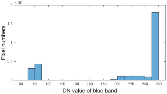 Blue-band histogram of the ice cap result after segmentation of the image index by Otsu’s method.