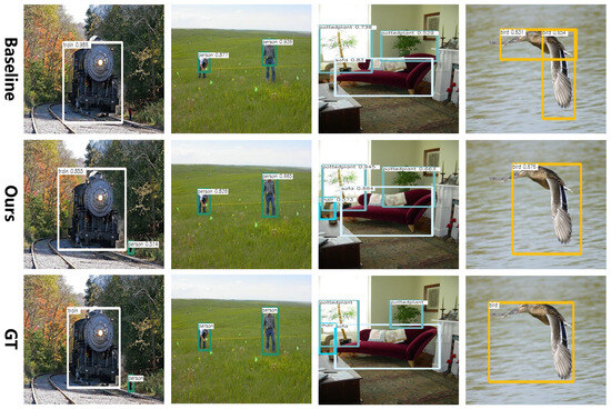 In order to verify the validity of our proposed method, we further evaluate the proposed model on PASCAL VOC2007 http://host.robots.ox.ac.uk/pascal/VOC/voc2007/index.html (accessed on 20 March 2024) [12], PASCAL VOC2012 http://host.robots.ox.ac.uk/pascal/VOC/voc2012/index.html (accessed on 20 March 2024) [12] and COCO https://cocodataset.org/#download (accessed on 20 March 2024) [13], which are the most popular datasets for natural image-based WSOD methods. Following the standard experimental settings [15,16], we only use image-level annotations for training.