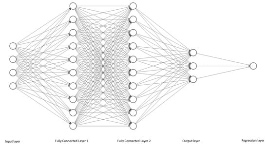 We decided to use a Feedforward Neural Network (FNN) for the purposes of our study because it is a suitable choice for simple data due to several reasons. Firstly, FNNs are straightforward and easy to implement, making them accessible for simple tasks where complex architectures might be unnecessary []. Their simplicity facilitates rapid prototyping and experimentation with different network architectures and hyperparameters []. Secondly, FNNs excel at learning linear and non-linear relationships between input features and target variables []. For simple data with clear patterns or separable classes, FNNs can effectively capture and model these relationships without the need for more complex architectures. Additionally, FNNs are computationally efficient, making them well suited for processing small- to medium-sized datasets commonly encountered in simple-data scenarios []. Their efficiency enables faster training times and inference, which is advantageous when dealing with straightforward tasks where computational resources might be limited. Overall, FNNs offer a pragmatic and effective solution for simple data by providing a balance among performance, simplicity, and computational efficiency.