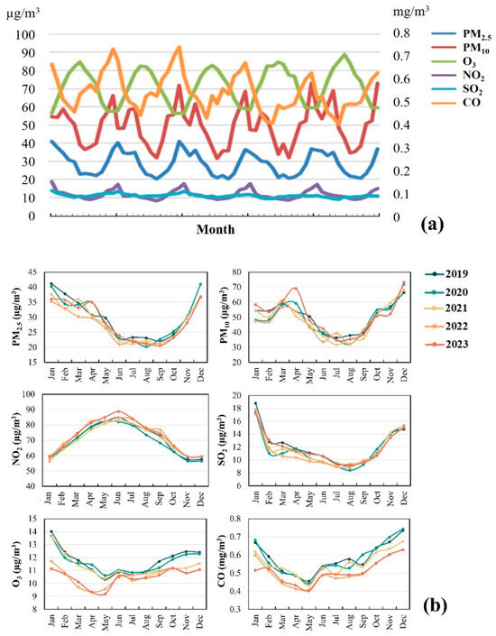 3.2. Spatiotemporal Patterns of Air Pollutants