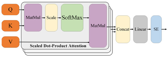 The structure of the SE module is illustrated in Figure 6. In order to highlight the important features, the SE module has been added after the output of the multi-head attention mechanism. The SE module consists of squeeze and excitation components, reconstructing channel weights by modeling relationships between channels. Therefore, features related to channel regions become more prominent.