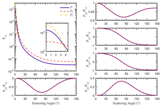 Original, rapidly-varying, and slowly-varying scattering phase matrix used in the following study. The predefined truncation angle for is and .