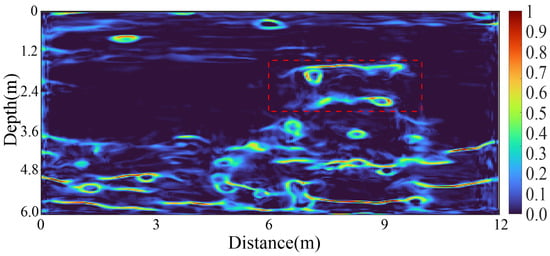 Finally, we employed field data consistent with synthetic data parameters for prediction, obtained from a flat and obstacle-free open area. The prediction results demonstrated a moderate number of surface rock formations, fewer formations in the middle area, and increased formations at greater depths. Additionally, coherence information in the middle and deep areas was evident. Based on these prediction results, we analyzed the stratigraphic structure of the area. The imagery revealed a surface layer comprising sandy soil, depicted as a relatively uniform light-colored region, with scattered small rocks or blocks potentially indicating gravel or larger sand particles beneath the surface. Below the sandy soil layer lay a layer of clay, distinguishable by its darker hue compared to the sandy soil layer.