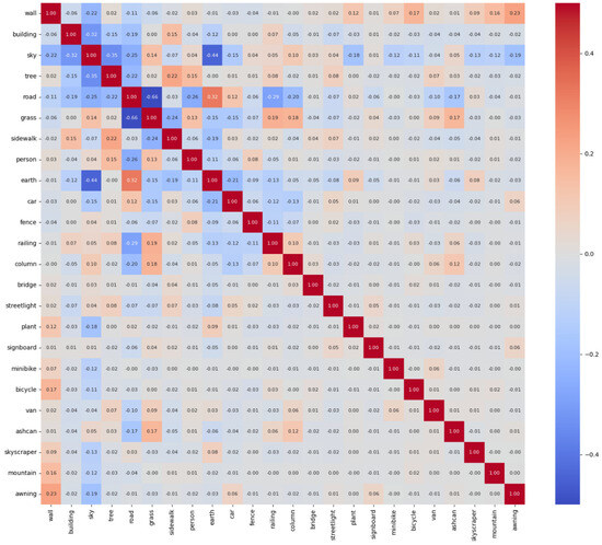The independent variables are streetscape visual features extracted from the 25,046 SVIs (Figure 4). Streetscape features represent the micro-level built environment that becomes hidden layers to represent comprehensive urban information related to residential CEs, such as urban location, land use, microclimate condition, and residents’ behavior such as their living styles and habits, which link to the residential CEs.