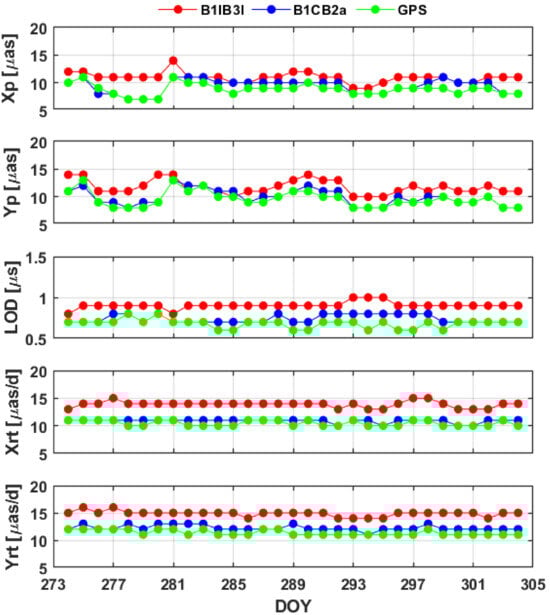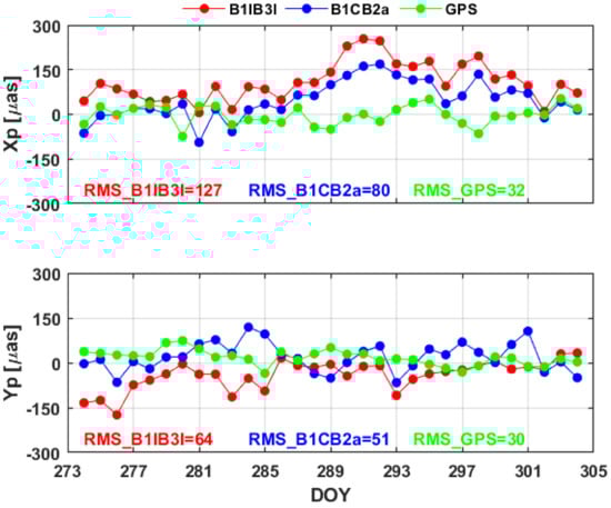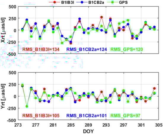 17]. Moreover, He et al. compared the ERP estimated by BDS, GPS, and Galileo and analyzed the features of their systematic bias in ERP [
