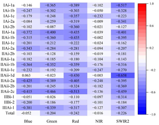 - In the individual effect analysis, the soil factor had the greatest individual effect on the OSV variation, with a correlation coefficient of −0.635, followed by the climate factor at 0.517 and the topography factor at 0.404.