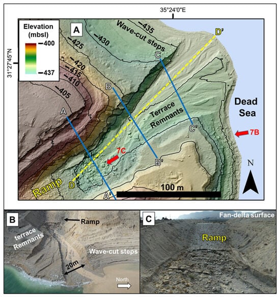 - Enzel, Y.; Mushkin, A.; Groisman, M.; Calvo, R.; Eyal, H.; Lensky, N. The modern wave-induced coastal staircase morphology along the western shores of the Dead Sea. Geomorphology 2022, 408, 108237. [Google Scholar] [CrossRef]