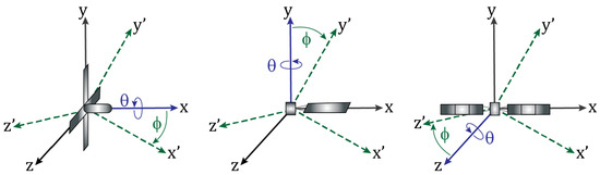 Simulated data provide a means of understanding the scattering characteristics of resident space objects of interest. For ease of interpretation, purely rotational motion was considered in isolation from noise and ionospheric effects. A simple computer-aided design (CAD) model provided the basis for electromagnetic simulation, where fine details were excluded and the material properties of the CAD model were assumed to be perfectly electrically conducting due to the relatively large wavelength at VHF. Three space objects of different electrical sizes are described in the following sections with the associated CAD model used in the electromagnetic simulations in the CST Microwave Studio. The system scenario for the simulations is described in Figure 4 defining the plane of rotation, spin axis and elevation angle relative to the BPST VHF radar.