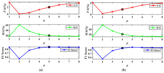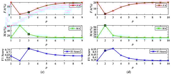 In this experiment, the 5th, 4th, 3rd, and 2nd progressive results were selected as the final results for datasets A, B, C, and D, respectively (small black box in Figure 15). It can be observed that the small black box is overall in the moderate position of FA and MA, thus avoiding too big or too small values of FA and MA. However, this is not the case for dataset D. This is because the mask segmentation makes the accuracy obtained from each progression not continuous, so it is difficult to ensure that the result is optimal each time (such as the final F1 of datasets B and D being suboptimal).