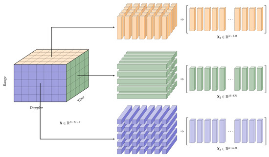 where . We denote (25) as the range-Doppler-time (RDT) representation of the radar signal. It is convenient to express (25) as a discrete time signal to account for the fact that the radar data are sampled and processed digitally, and also to account for the inherent discrete nature of the data in slow-time arising from using a pulsed radar. This gives rise to the 3D RDT tensor