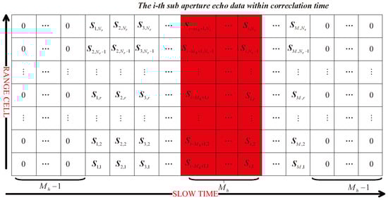 where is the intermediate time in the i-th sub-aperture echo data and . Concurrently, appropriate window functions can reduce the sidelobe clutter levels. To ensure that the echo data of different pulses undergo the same number of sliding windows, we perform a zero filling operation before and after the current pulse. The i-th sub-aperture data after the primary sliding window are shown in the Figure 3, which can be represented as