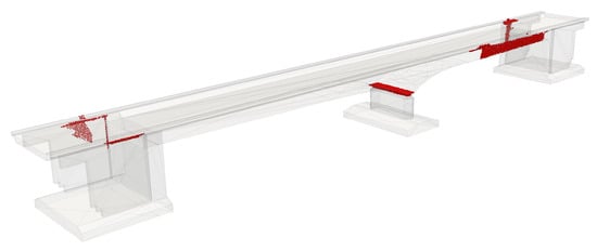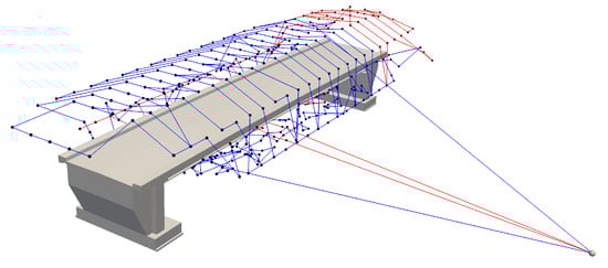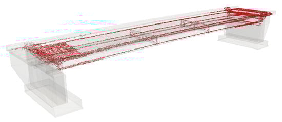 Regarding the topic of this work, the aerial survey of bridges for high-resolution image generation, only one paper with a similar thematic stance has been published thus far. To contextualize the findings of this work within the current state of the art, the bridge model used by Wang et al. [] has graciously been made available. The bridge, located in Hastings, New Zealand is illustrated in Figure 17.