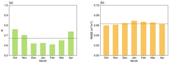 Statistical metrics were employed for quantitative analysis comparing the estimated and observed SM values. This study utilized two metrics, encompassing the correlation coefficIt (R) and root mean square error (RMSE). The statistical metrics are detailed as follows: