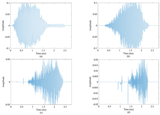 Recently, many time–frequency transformations have been developed to improve the quality of the TFRs of signals, such as the reassignment method (RM) [25] and the synchrosqueezing transform (SST) [26]. In these methods, the most important operation is calculating the IF estimation operator. For a given signal of , when , , and ( is small enough), the accuracy of the IF estimation is acceptable. However, is a harsh term. Once is non-negligible, the error between the IF estimation and the real one becomes large [27,28,29]. Therefore, the original SST methods cannot obtain satisfactory results for a highly FM signal. To address this issue, some new methods have been proposed to modify frequency estimation for strong FM signals, e.g., the second-order STFT-based SST (FSST2), high-order STFT-based SST (FSSTN), MDT-based SST, and synchro-compensating chirplet transform [27,28,29,30,31,32,33,34,35].