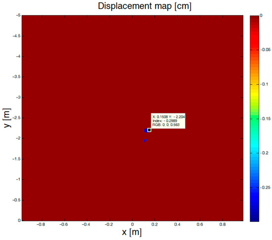 The displacement map was filtered so that only the pixels with high values in the interferogram magnitude were plotted. The threshold was 40% of the maximum value of the interferogram magnitude. The filtered displacement map is presented in Figure 16.