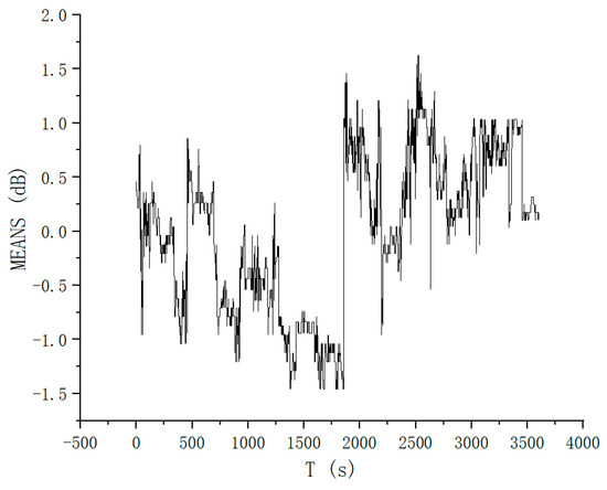 As it can be seen from Figure 2, the average signal strength of the multi-channel pseudo-satellite C/N0 is used as the evaluation object for time stability. The average fluctuation range is −1.5~1.5 dB in 1 h sampling time, the absolute value of the minimum signal strength fluctuation is 0 dB, the absolute value of the maximum signal strength fluctuation is 1.5 dB, and the standard deviation of the multi-channel pseudo-satellite C/N0 signal strength at 1 h sampling time is 0.70 dB. It can be seen from the test results indicate that the signal strength of pseudo-satellite C/N0 exhibits minor fluctuations in non-line-of-sight environments, with a temporal stability that is significantly superior to that of Wi-Fi signals. This difference ensures positioning stability and robustness.