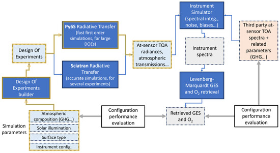 The SolAtmos approach is centered on a detailed process that considers a wide range of parameters from the observation conditions to the instrument’s performance. In subsequent sections, a more detailed explanation of the three tools used in the end-to-end simulator is provided.