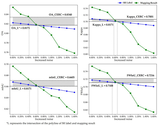 The impact of introduced exogenous label noise on land cover mapping (L represents the intersection of the polyline of SR label and mapping result).