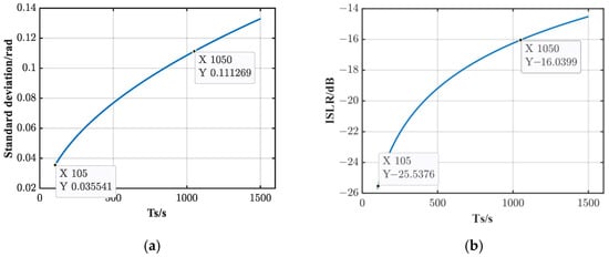 Influence of phase noise with synthetic aperture time. (a) Standard deviation of QPE varies with synthetic aperture time. (b) ISLR caused by high-frequency phase noise varies with synthetic aperture time.