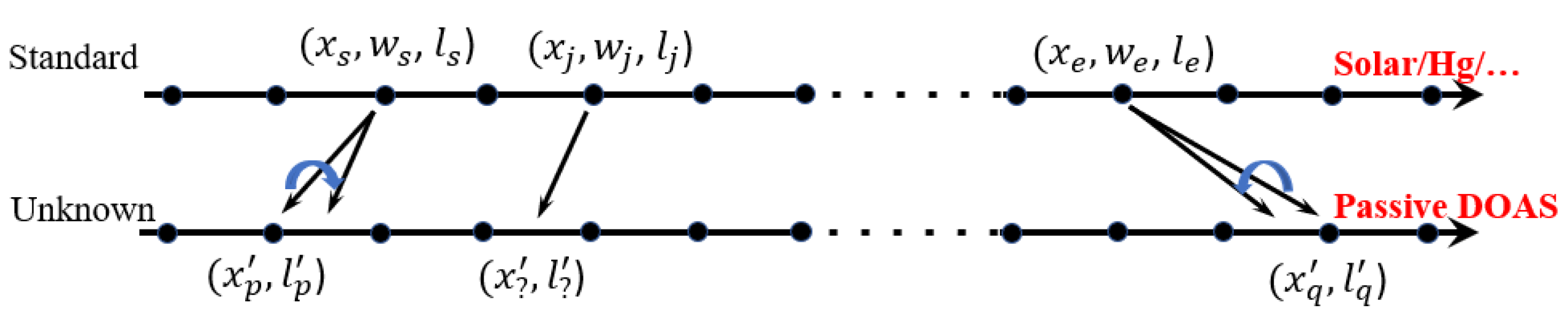 2.1. Definition of Passive DOAS Spectral Sequence Matching