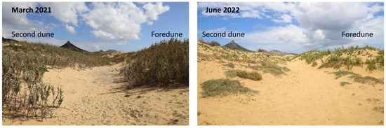 - From October 2022 to February 2023, repeated vegetation removal led to a significant decrease in vegetation cover in both the SW and NE foredune sections.