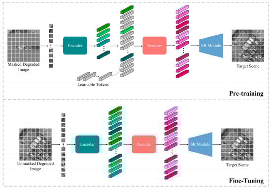 - He, K.; Chen, X.; Xie, S.; Li, Y.; Dollár, P.; Girshick, R. Masked autoencoders are scalable vision learners. In Proceedings of the IEEE/CVF Conference on Computer Vision and Pattern Recognition, New Orleans, LA, USA, 18–24 June 2022; pp. 16000–16009. [Google Scholar]