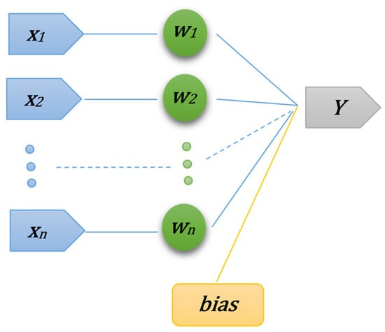 ANNs comprise a sequence of layers, as follows: an input layer, one or more intermediate hidden layers, and an output layer. Each layer contains several neurons. To obtain a prediction, layer by layer, the neurons use weighted input information and give an output. The output, Y, of a neuron is calculated as the weighted sum of the input variables, and a bias value (Figure 6), as follows: