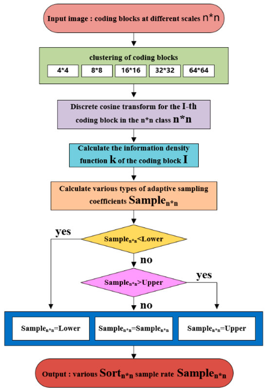 - Sampling rate adaptive allocation stage: Develop image sparsity judgment criteria, adaptively set sparsity as the information density function of a given coding block based on the different information densities between different coding blocks, and adaptively allocate sampling rates for a given image block;