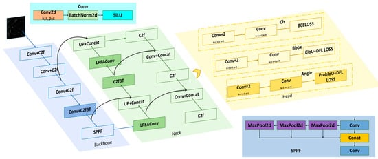 The R-LRBPNet is designed on the basis of YOLOV8n. Its network structure is shown in Figure 3. The model structure is mainly divided into three parts: the backbone, neck and decoupling head.