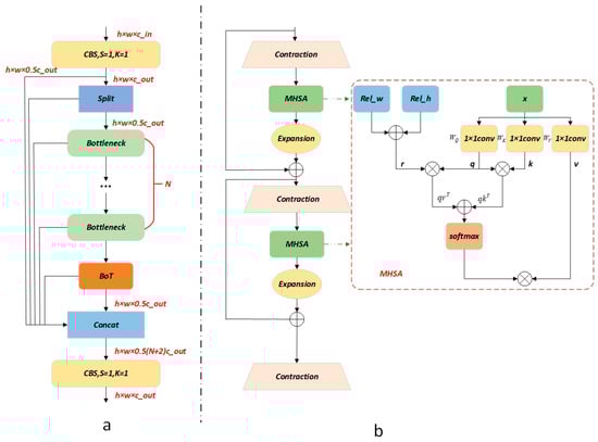 C2fBT is a hybrid model that uses convolution and MHSA. The structure computes queries , keys , values and their positional parameters by three 1 × 1 convolutions. The formulae are as follows: