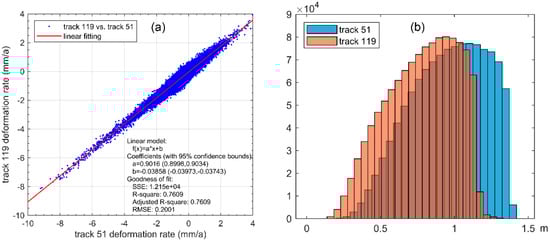 The figure shows the deformation rate of study area: (a) track 51; (b) track 119.
