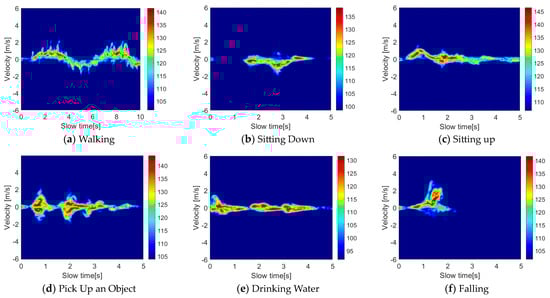 The micro-Doppler signatures of a human target strongly indicate the target’s pose and motion. For instance, swinging arms or legs during walking generates characteristic patterns in the micro-Doppler spectrum that are distinct from those generated by other actions such as running or waving [12]. This distinction arises because each type of movement has a unique velocity profile over time, captured by the micro-Doppler effect [13]. Consequently, analyzing these signatures allows for the inference of specific postures and motions, making it possible to identify and classify human activities based on radar signals alone.