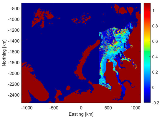 - Similä, M.; Mäkynen, M.; Karvonen, J.; Gegicu, A.; Gierisch, A. Modeled Sea Ice Thickness Enhanced by Remote Sensing Data. In Proceedings of the Proc. European Space Agency Living Planet Symposium, Prague, Czech Republic, 9–13 May 2016; ESA: Prague, Czech Republic, 2016. Volume ESA SP-740. p. 6. [Google Scholar]