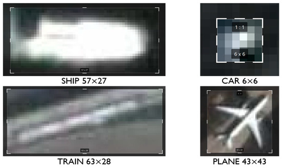 Figure 2. Pixel statistics for vehicles, vessels, and aircraft in video satellite sequences with a ground sample distance (GSD) of 1.1 m. - When video satellites capture videos with a tiny off-nadir angle, the resulting video sequences can be approximated as being captured in a near-vertical manner. Compared with nature scenarios, the object sizes are relatively consistent, and fewer occlusions occur between objects. The motion patterns of objects are similar, and their trajectories tend to be linear. Additionally, unlike conventional remote-sensing imagery, remote-sensing video satellites capture imagery with high frame rates, which results in high scene overlap in the captured landscapes and significant overlap of the same object between adjacent frames.