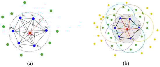 The influence of point pairs in the neighborhood is approximated by , which facilitates parallel processing and improves computational efficiency. Also, as shown in Figure 2b, FPFH expands the neighborhood range (up to ), which can enhance the feature characterization.