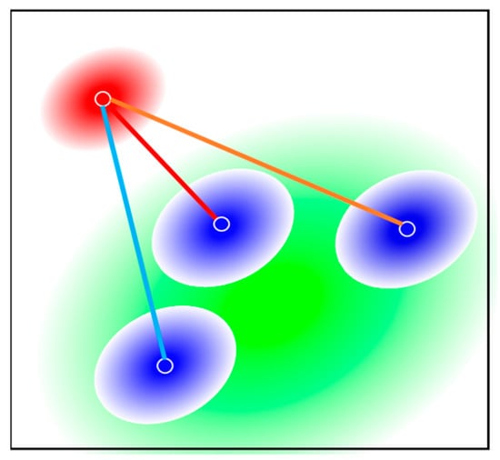 VGICP takes into account local smoothing, which is robust against local area differences resulted from point cloud sampling granularity and source data resolution, and thus better solves the MOLA DEM and HiRISE DEM registration problems. However, similar to NDT, the voxel radius has a large impact on the registration accuracy. In order to reduce the sensitivity of voxel radius selection, we improved VGICP by smoothing and weighting the loss and covariance terms in (18) using the Euclidean distance from to , so that the weights of different points within the voxel are different (as in Figure 6). The maximum likelihood problem of our improved method can be described as