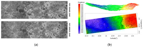 HiRISE Experimental data. (a) HiRISE stereo image; (b) HiRISE DTM.