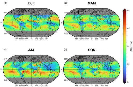 3.2. ABLH Seasonal Fields from Satellite Observations