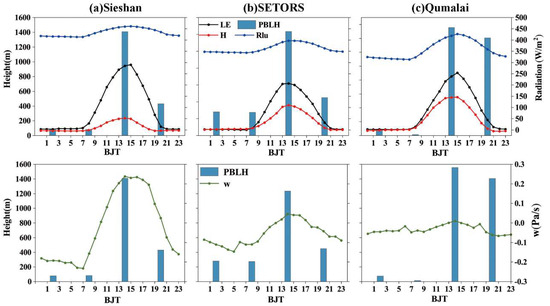 The H is the heat transport between the surface and atmosphere caused by turbulent motion near the ground, and LE is the heat transport between the surface and atmosphere caused by the phase change in water in the atmosphere. Therefore, H and LE are the key physical quantities that influence the formation and development of the atmospheric thermal boundary layer [10].