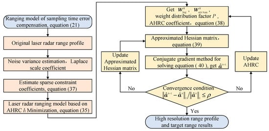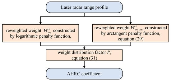 By solving the optimization problem of Equation (22), the reconstructed laser-radar range profile can be obtained, and the target range can be estimated. However, the performance of the target-range estimation obtained by directly solving Equation (22) is limited under the condition of a low SNR. To improve the accuracy of target-range estimation under a low SNR, it is necessary to use weighting [35,55,56] and prior knowledge to ensure that the parameters converge to the actual value.
